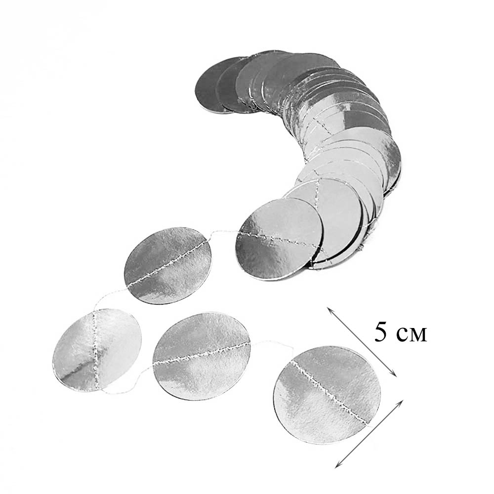 Гирлянда "Кружочки" металлик 5 см х 4,5 м, Серебро