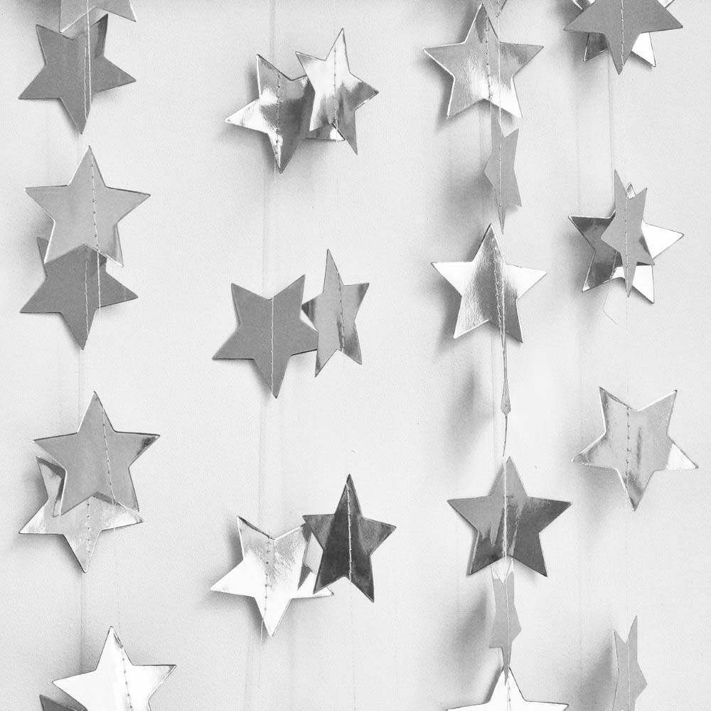 Гирлянда Звезды металлик 7 см 4 м серебро