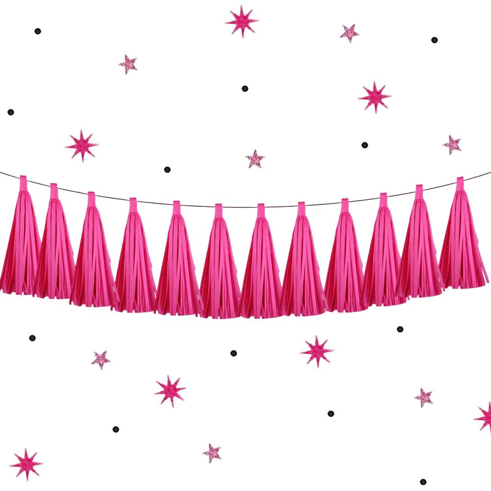 Гирлянда тассел 12 кисточек по 10 листов, малиновый