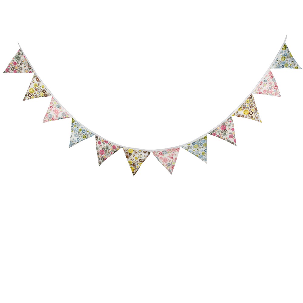 Гирлянда состоит из 12 флажков. Расстояние между флажками - 6 см, общая длина составляет 4 м.