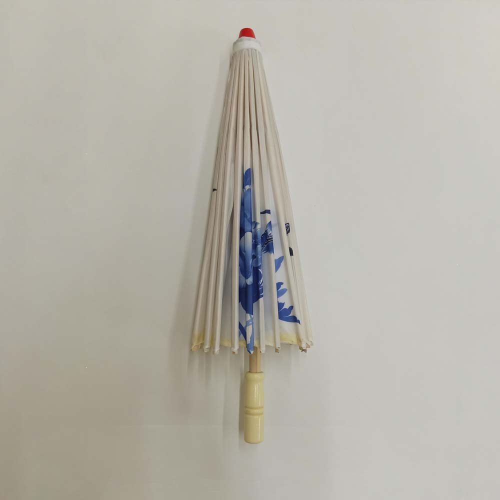 Каркас зонтика выполнен из дерева,купол зонта изготовлен из водоотталкивающего материала,который не пропускает воду.