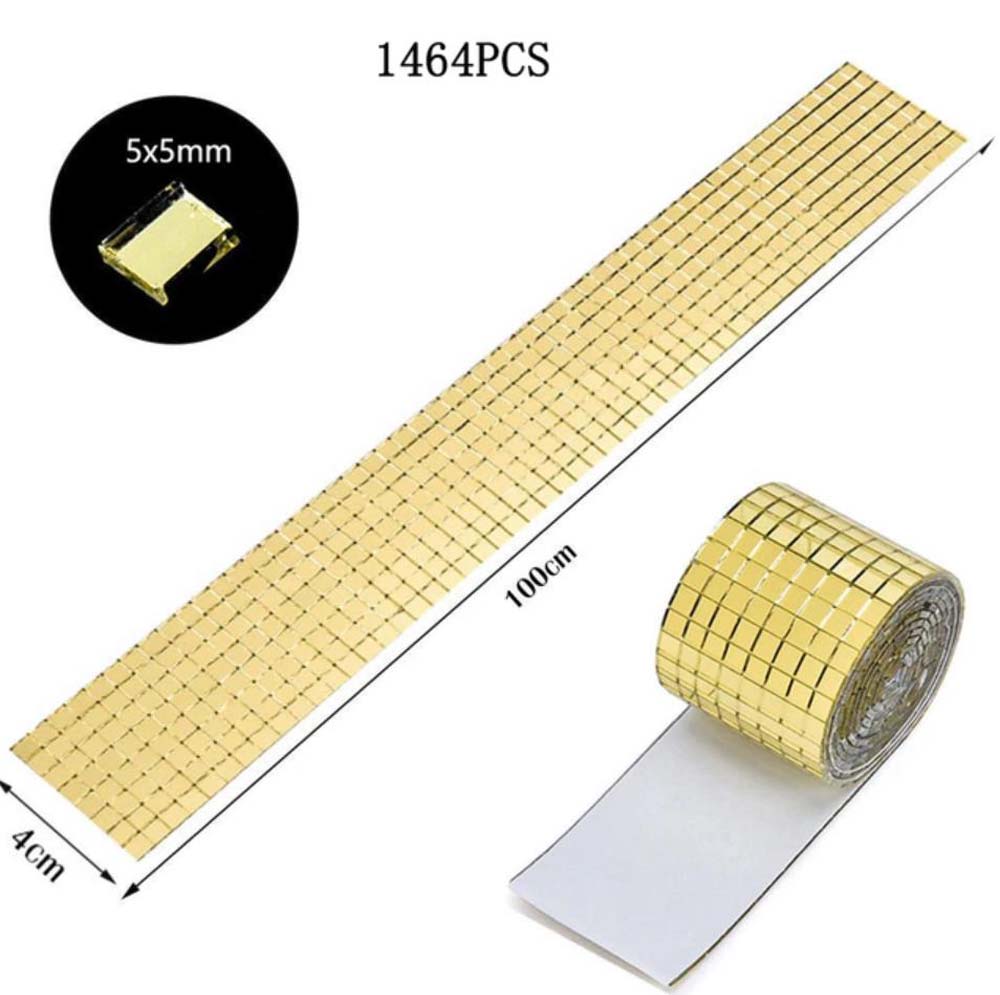 Лента самоклеящаяся зеркальная мозаика стекло, 4см х 1м 5х5мм, золото-лайм