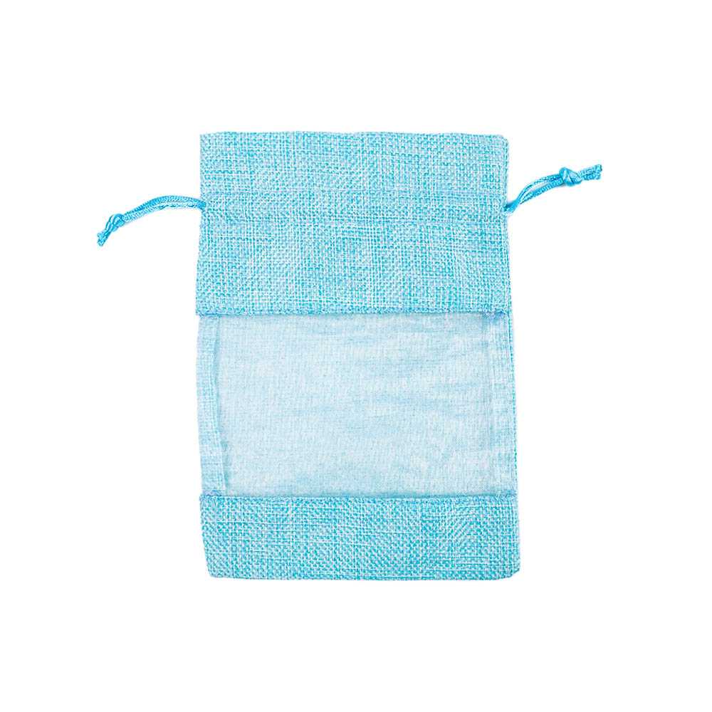Мешочек из мешковины и органзы 13х18 см голубой
