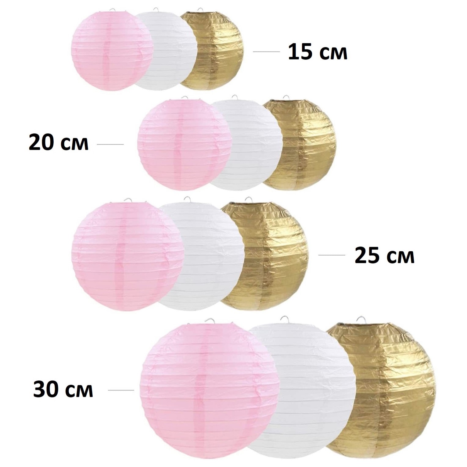 Набор подвесные фонарики 12 шт, розовый+белый+золото