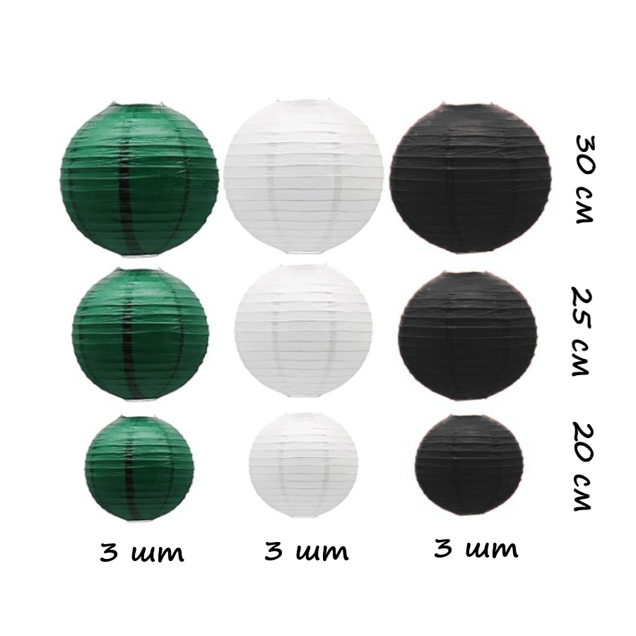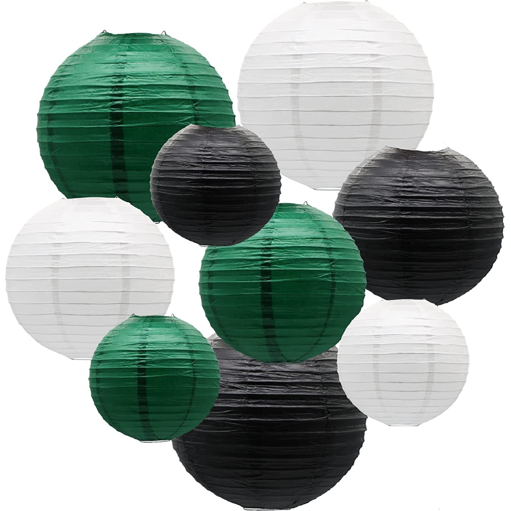 Набор подвесные фонарики 9 шт, белый+черный+т.зеленый