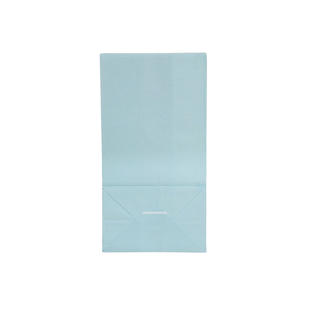 Подарочный пакет из крафтовой бумаги пастельного оттенка с белыми бумажными ручками и белой внутренней стороной.