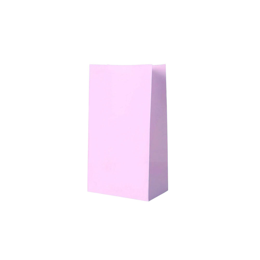 Подарочный пакет из крафтовой бумаги пастельного оттенка с белыми бумажными ручками и белой внутренней стороной.