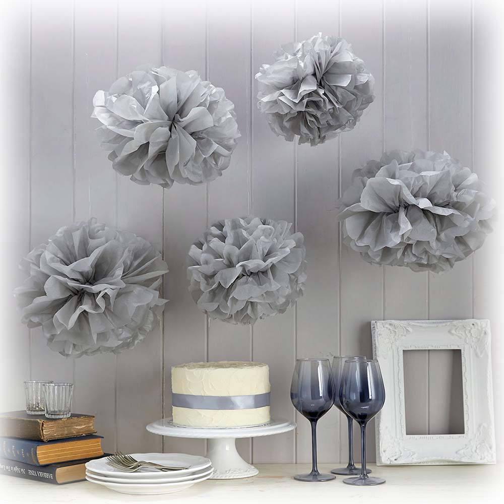Помпон из бумаги 35 см серебро