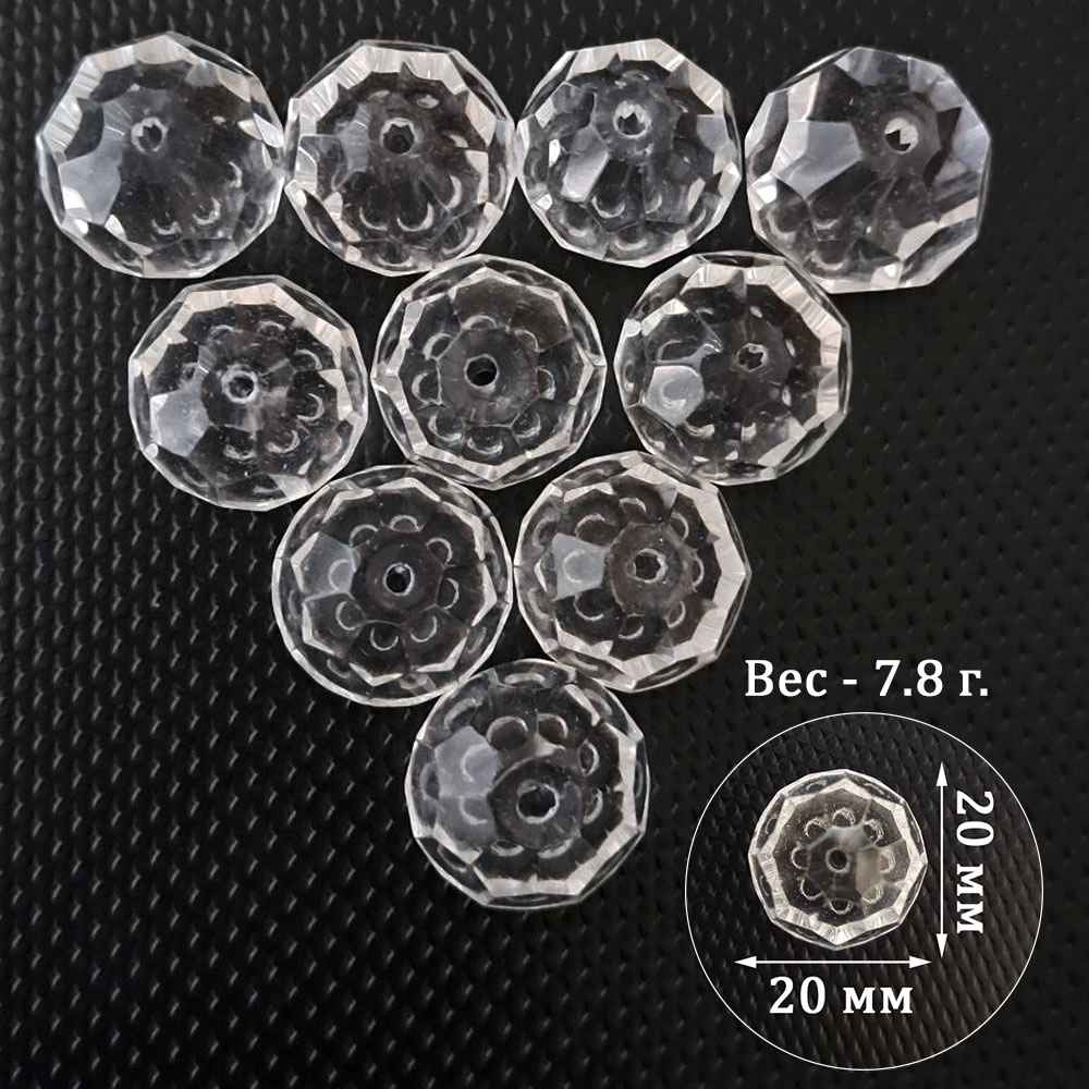 Набор прозрачных кристаллов "Граненый круг", 20 мм (10шт)