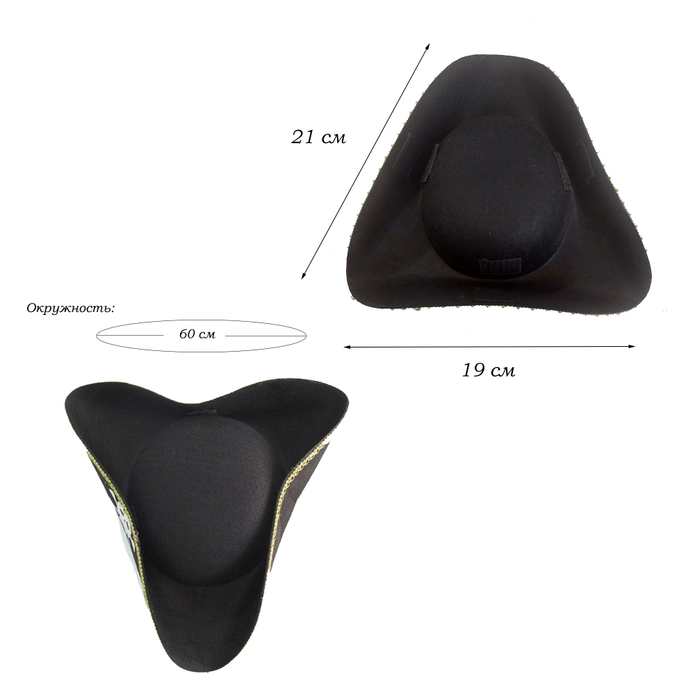 Шляпа Пирата треуголка на липучке, черный