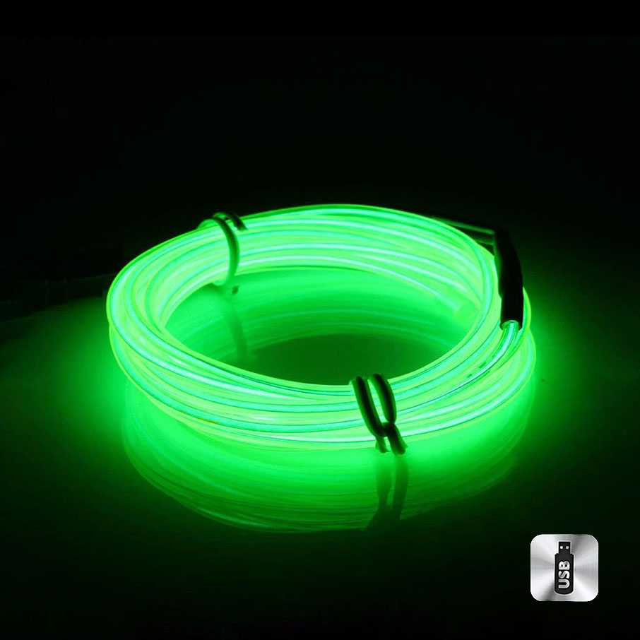 Шнур неоновый светящийся от USB 5 м, лайм