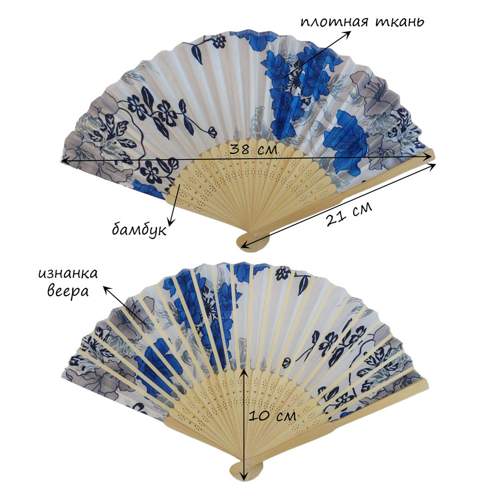Веер с цветочным узором 38х21 см, №8