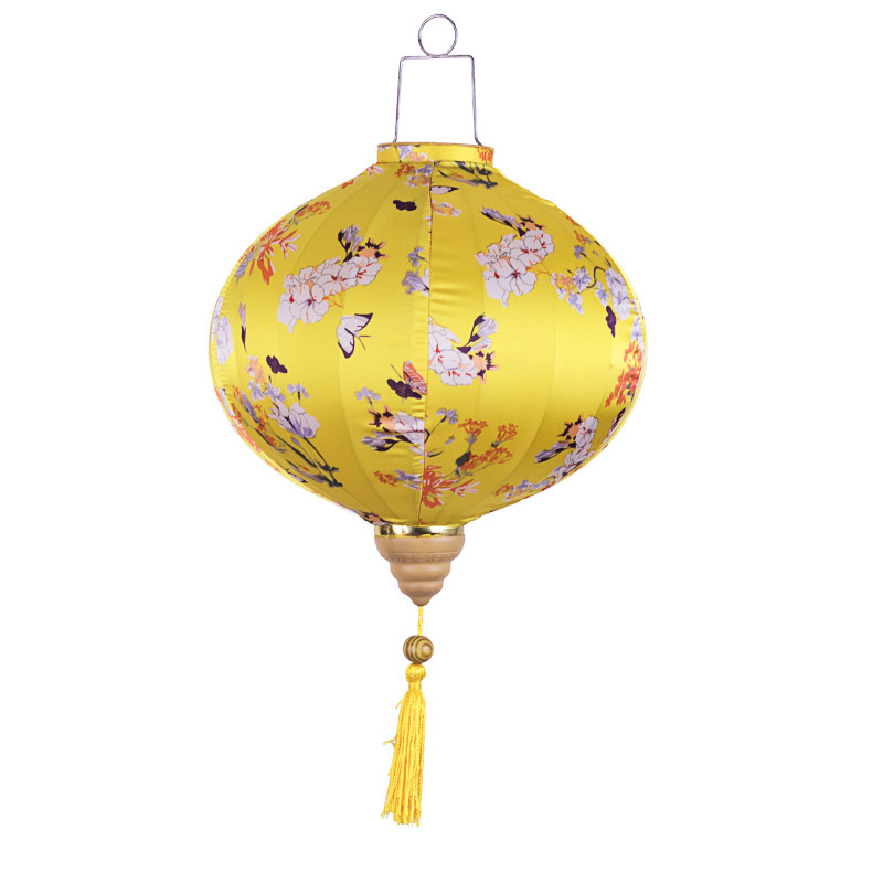 Коллекция подвесных фонарей ручной работы. Конструкция из шелкового полотна с цветочным орнаментом, металлического каркаса и подвесной системы. Модель в желтой цветовой гамме.