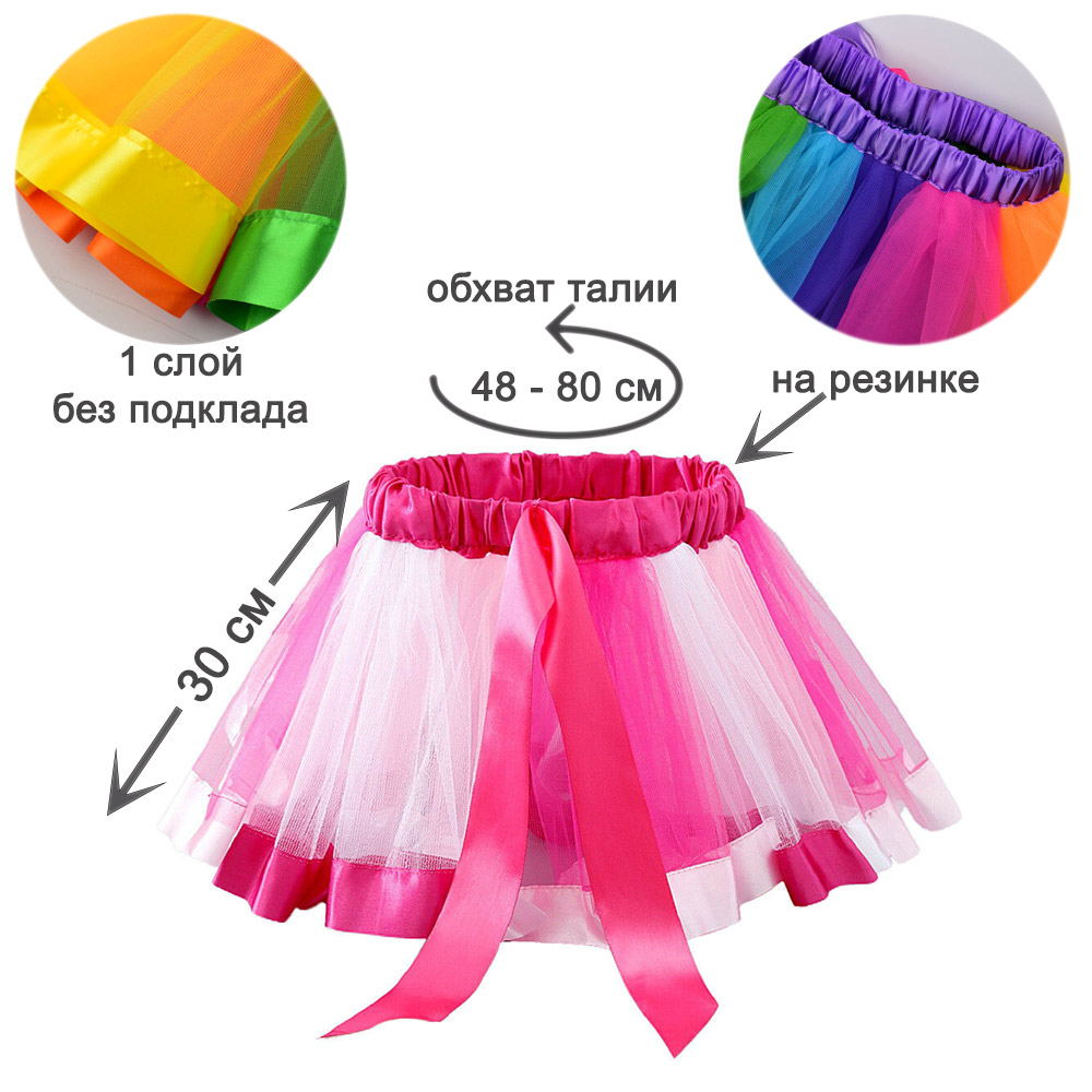 Юбка лёгкая и удобная, мягкий фатин создаёт красивый объём, а эластичный пояс обеспечивает комфортную посадку.