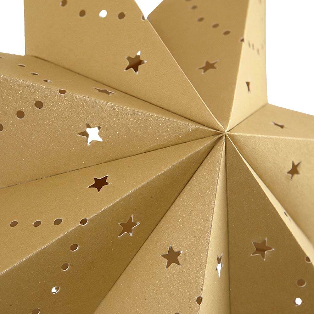 Семиконечная объемная звезда 45 см — великолепный декор из тонкого перфорированного картона. Создает красивые световые эффекты. Поставляется в сложенном виде, в комплекте шнур для фиксации объема и подвеса.